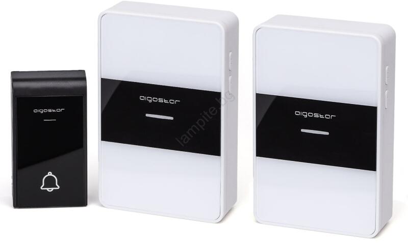Aigostar B. V. Aigostar - KÉSZLET 2x Vezeték nélküli csengő 3xAA IP44 fehér/fekete B20105VKV (AI0551)