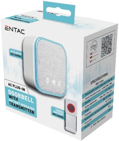 Avide Entac Hálózati Ajtócsengő, Elemes IP44 Adókészülékkel 1xCR2032 Tart (EDB-AC-44)