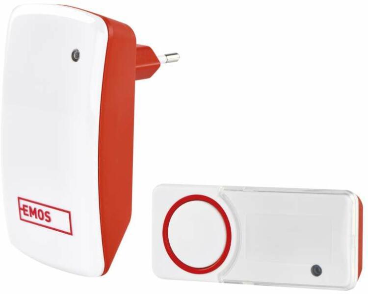 EMOS vezeték és elem nélküli csengő (1 csengő és 1 nyomógomb) piros (P5750)