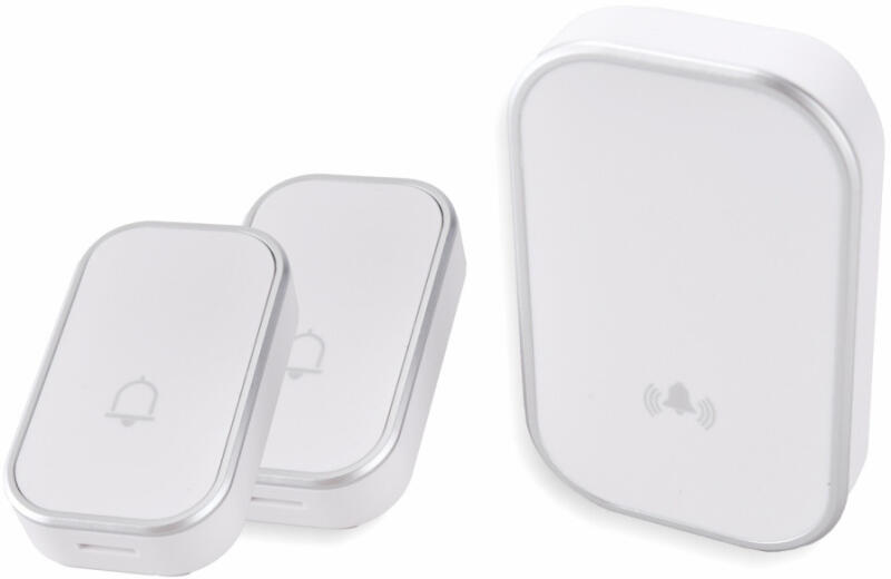 OMU System WB12V-2A1VW vezeték nélküli ajtócsengő 2 adó és 1 vevő egység fehér színben Egyszerű telepítés, stílusos megjelenés és megbízható működés! Könnyű telepítés: Nem igényel kábelezést. Egyszerűen csatlakoztassa a vevőt a konnektorhoz, és rögzítse az adót a kívánt helyre. 38 dallam: Válassza ki a kedvenc dallamát a széles kínálatból, hogy személyre szabja csengőhangját. Állítható hangerő: Többszintű hangerőszabályzás a maximális rugalmasság érdekében. Szabadon párosítható: Az adó és vevő egységek szabadon kombinálhatók a különféle igényekhez igazodva. Műszaki paraméterek: Vevő üzemi feszültsége: AC220-240V, 50Hz/60Hz Vevő energiafogyasztása: 0,5W Működési frekvencia: 433MHz Adó energiafogyasztása: