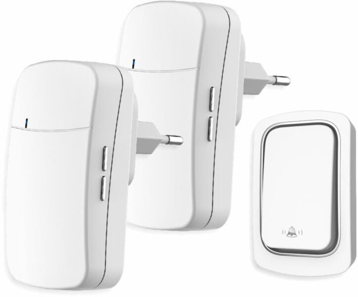 OMU system WBKK02-1A2VW Vezeték és elem nélküli csengő 1 adó - kinetic kapcsoló és 2 vevő egység fehér Energikus megoldás otthona számára – kábelek és elemek nélkül! Elem nélküli működés: A KINETIC technológia lehetővé teszi, hogy az adó elem nélkül működjön, így soha nem kell elemet cserélni. Egyszerű telepítés: Könnyen rögzíthető kétoldalas ragasztóval vagy csavarokkal a kívánt helyre. Nagy hatótávolság: Akár 150 méteres vezeték nélküli hatótávolság szabad területen. Univerzális használat: Ideális otthonokba, irodákba, üzletekbe és raktárakba. Elegáns és praktikus: Kompakt kialakítás, amely illeszkedik bármilyen környezethez. Műszaki paraméterek: Vevő üzemi feszültsége: AC100-240V, 50Hz/60Hz Vevő energiafogyasztása: 0,2W Működési frekvencia: 433MHz Csengőhangerő: >50dB (0,5 méteren mérve) Méretek: Adó: 50x80x28mm; Vevő: 53x95x49-70mm Üzemi hőmérséklet: Adó: -20°C... +60°C; Vevő: -10°C... +45°C Fontos megjegyzések Ne telepítse fémtárgyak, például vasajtók és vaskeretek közelében, mivel ezek befolyásolhatják az átviteli távolságot. A falak és a mennyezet csökkenthetik a hatótávolságot. A csengő akár 3-4 falon is képes áthatolni. Ideális választás nagyobb házakhoz és irodákhoz