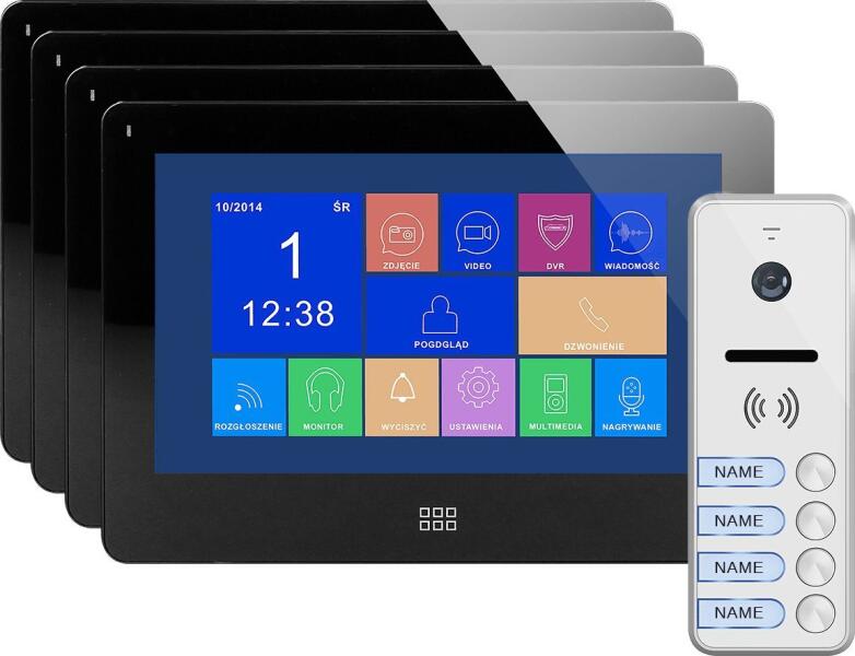 ORNO Videó-intercom Szett 4 Család Számára, Színes Kihangosító, LCD 7", Érintőképernyő, OSD Menü, Memória, SD Kártya foglalat, DVR, Kapu Vezérlés, fekete, FELIS MEMO MULTI4. (OR-VID-EX-1066/B) (OR-VID-EX-1