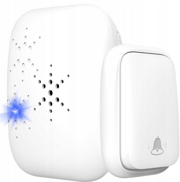 Vezeték nélküli ajtócsengő, 38 csengőhanggal, fehér, IP44 vízálló