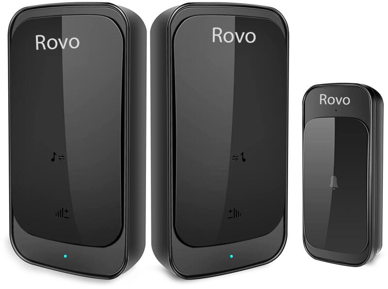 Rovo C03 Vezeték nélküli csengő, 2 vevő 38 hang, Állítható hangerő, 95 dB, IP44, Fekete