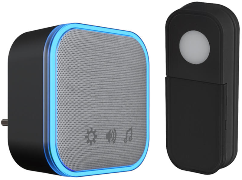 Solight vezeték nélküli csengő konnektorba, 180m, fekete, Led, 36 dallam, IP44 (1L76B)