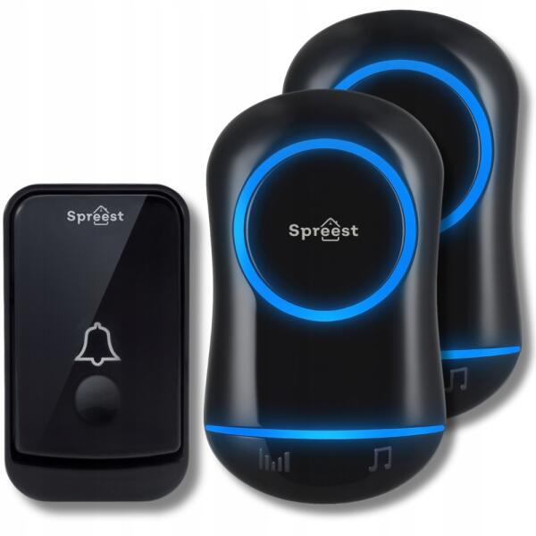 Spreest Vezeték Nélküli Kapucsengő Elemes Kapuhoz Vízálló 2 Db (Dzwonek bezprzewodowy Q188188-BB 1T2R Czarny)ALLEGRO