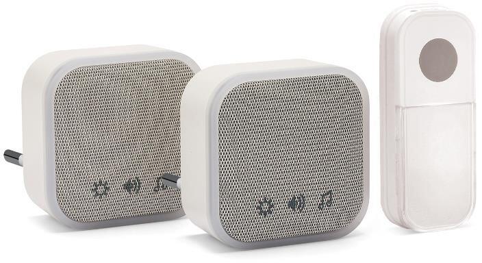 VELAMP Vezeték nélküli ajtócsengő DOM052 aljzathoz - 2 db, 150 m, 36 dallam (DOM052)